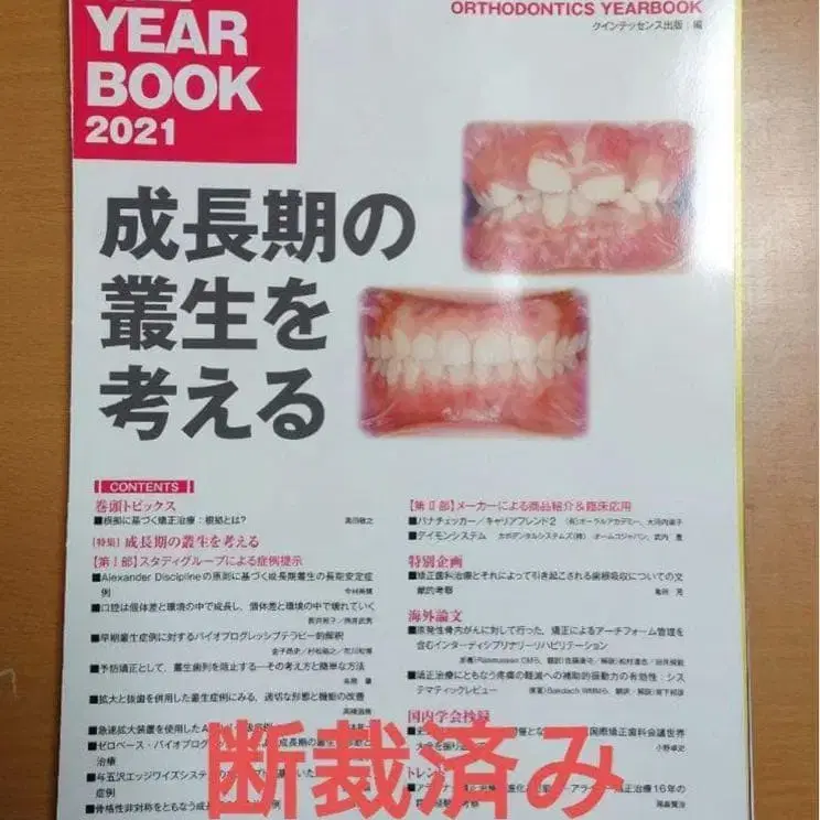 별책 더 퀸텟센스 임상가를 위한 교정 YEARBOOK 2021 성장기 치아 겹침을 생각하다 정가 6,000엔 (세금 별도) 절단 완료(업체 의뢰) 뒷표지 없음 빠진 페이지, 마커는 대략적으로 보았을 때 없지만 1페이지씩 확인한 것은 아닙니다. 위 사항을 이해하신 분만 구매해 주십시오.