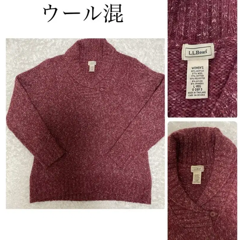 L.L.Bean (엘엘빈)의 보르도 색상 긴팔 니트입니다. 카울넥이 특징인 니트 의류입니다. [브랜드] 엘엘빈 L.L.Bean [색상] 빨간색 계열, 보르도 [디자인] 긴팔 니트 스웨터, 숄카라 [사이즈] 프리 사이즈 [소재] 아크릴 35%, 울 27%, 면 17%, 폴리에스테르 10%, 나일론 5%, 스판덱스 2% 넉넉한 핏의 니트로 코디하기 쉬운 디자인입니다. 개인적인 눈으로는 큰 얼룩 등은 없지만, 약간의 보풀이 있습니다. 옷깃의 버튼이 포인트인 니트 스웨터로, 따뜻하고 편안하게 입을 수 있는 아이템입니다. 중고품에 거부감이 없는 분이 사용해주시면 감사하겠습니다. 할인 문의, 사진 추가, 질문 등 편하게 댓글 부탁드립니다. 익명 배송으로 24시간 이내에 배송해 드립니다. 또한, 압축하거나 작게 접어서 포장합니다. 포장 시 생기는 주름은 양해 부탁드립니다. 개인 측정입니다만, 어깨 너비 46cm 가슴 너비 56cm 기장 63cm (앞면) 소매 길이 63cm 색상 - 레드 계열 계절 - 가을/겨울