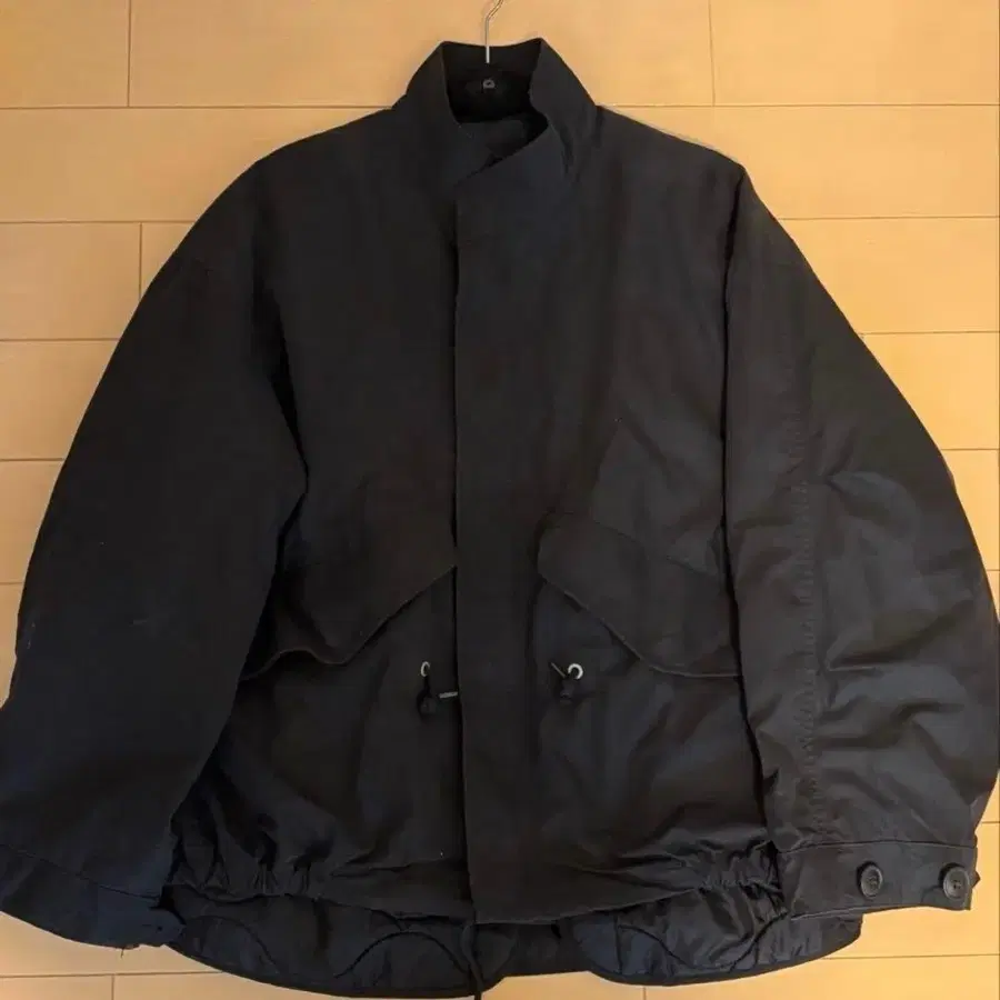 허리는 드로잉 코드로 조일 수 있고, 소매도 버튼으로 고정할 수 있어 다양한 실루엣에 대응합니다!