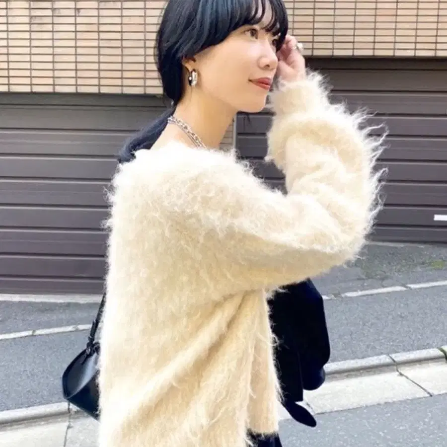 SLOANE 모헤어 샤기 V넥 니트 가디건