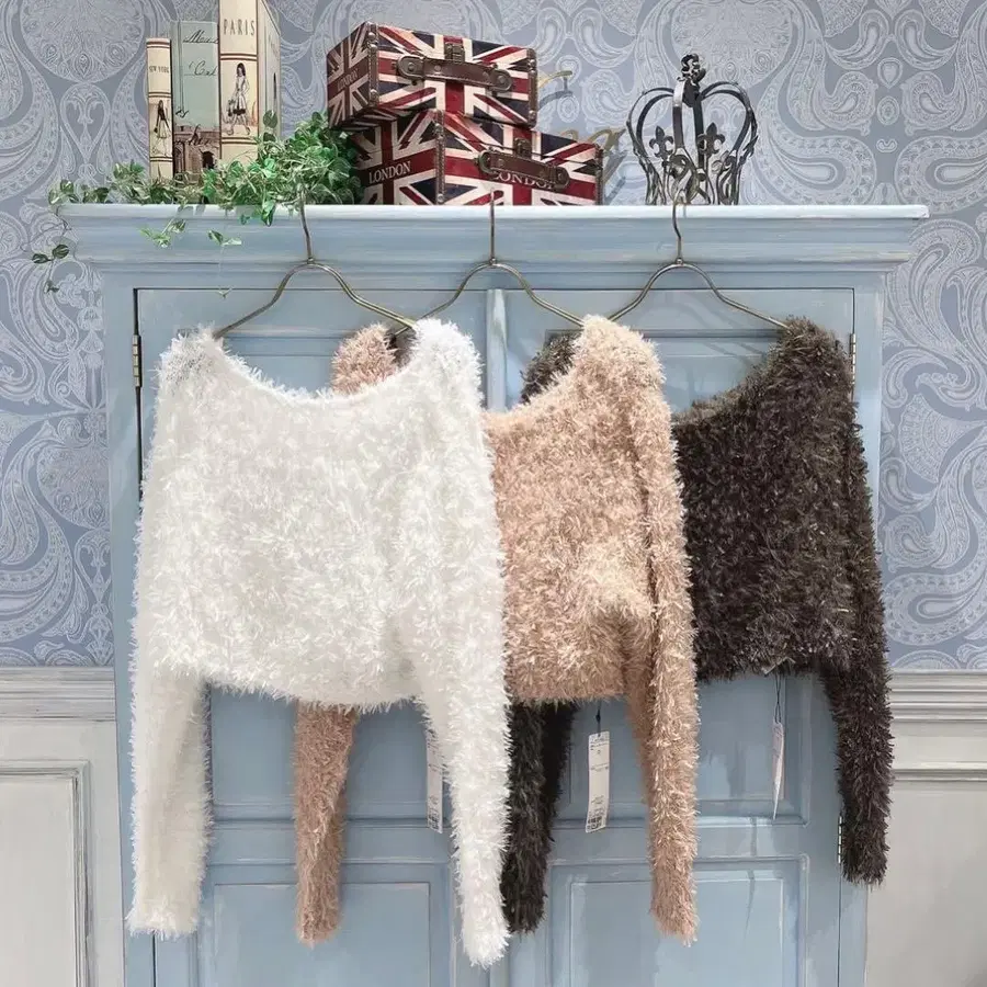 숏 페더와 팬시 얀을 함께 사용하여, 복슬복슬한 표정이 스타일링에 확실한 포인트를 주는 니트입니다.
