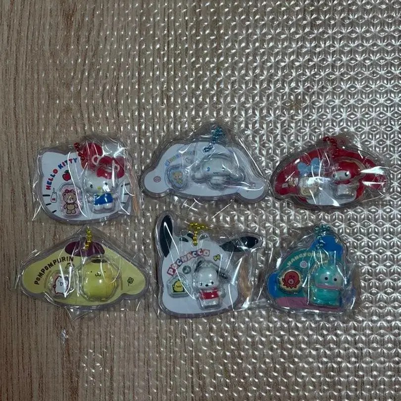 산리오 패키지 참 6개 세트 키티 시나모롤 마이멜로디 시크릿 폼폼푸딩 포차코 한교동 사진의 6개 세트입니다.