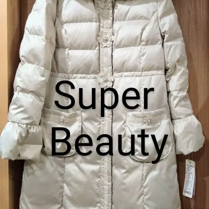 다운 90%, 페더 10%의 롱 코트입니다. 색상은 베이지입니다.