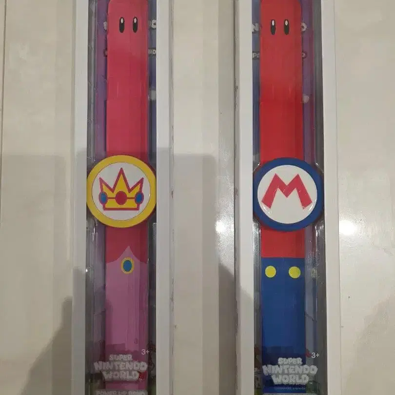 마리오와 피치의 파워업 밴드입니다. 2025년 12월 28일 usj에서 구매했으며, 30분 정도 사용했습니다. 파워업 밴드 - 핑크: 피치 - 빨간색: 마리오