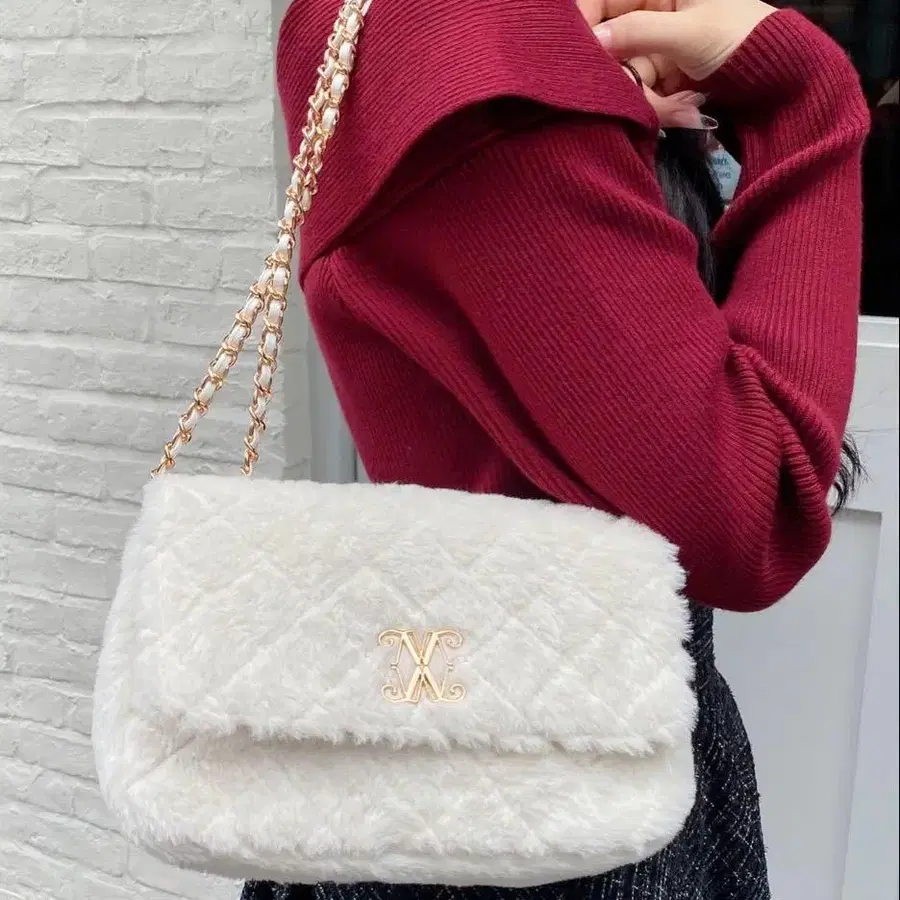 INGNI 인조 모피 퀼팅 숄더백 화이트