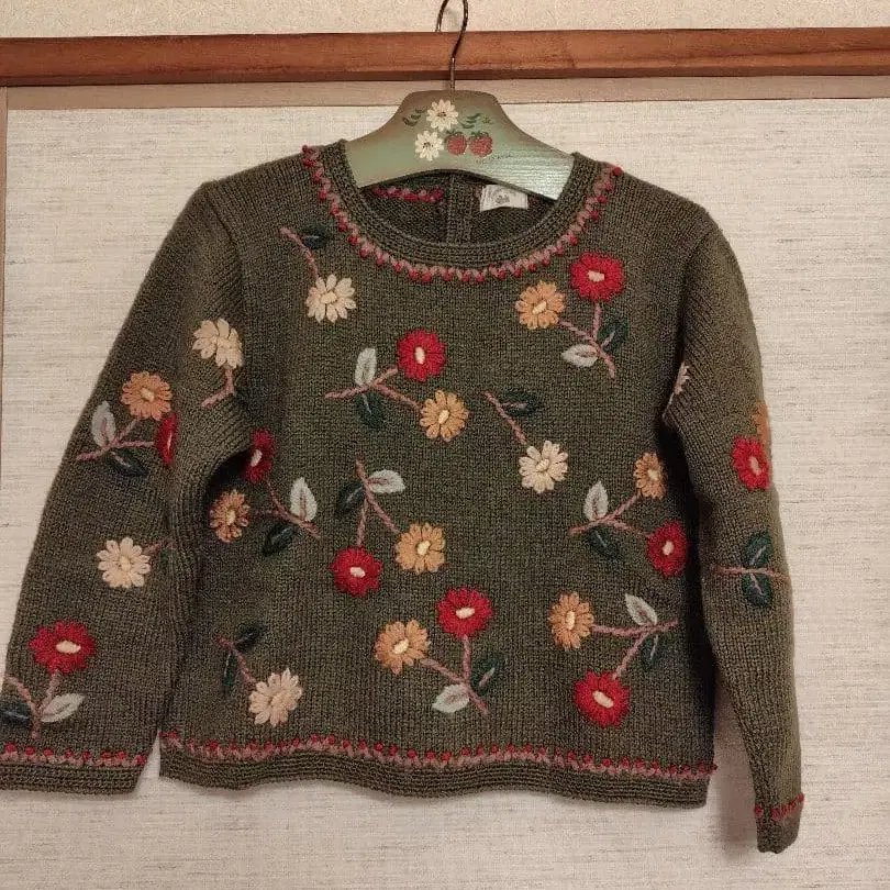 빈티지 꽃무늬 자수 니트 스웨터 긴팔
