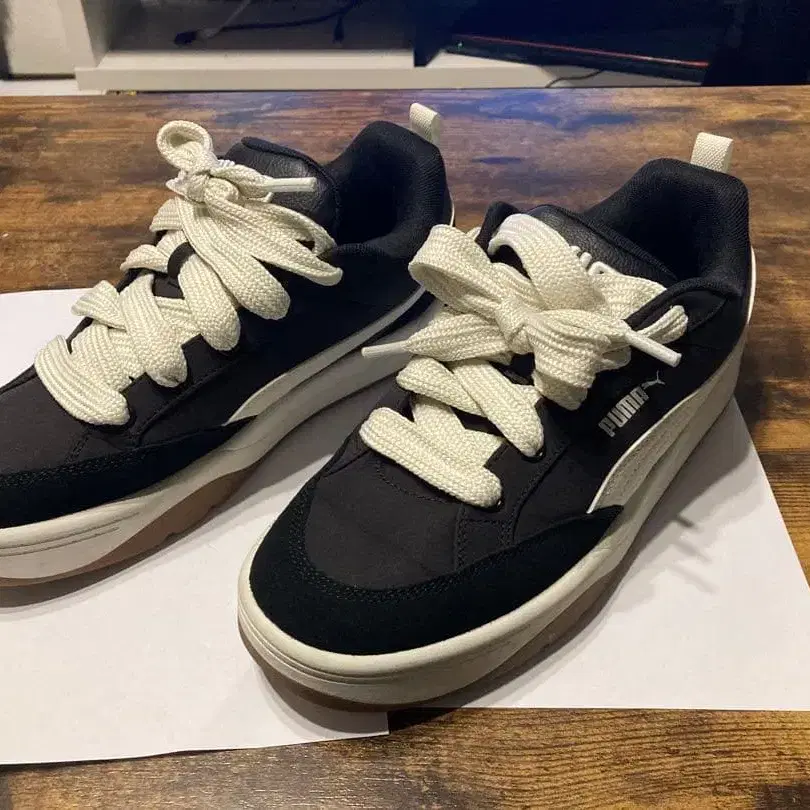 PUMA 스니커즈 블랙/화이트 - 브랜드: PUMA - 색상: 블랙/화이트 - 스타일: 스니커즈 - 신발끈 색상: 화이트 방문해 주셔서 감사합니다. 구매 후 몇 번 착용했지만 사이즈가 맞지 않아 판매합니다. ※ 주의 사항 ⚫︎ 상자는 없습니다. 신발만 발송됩니다.