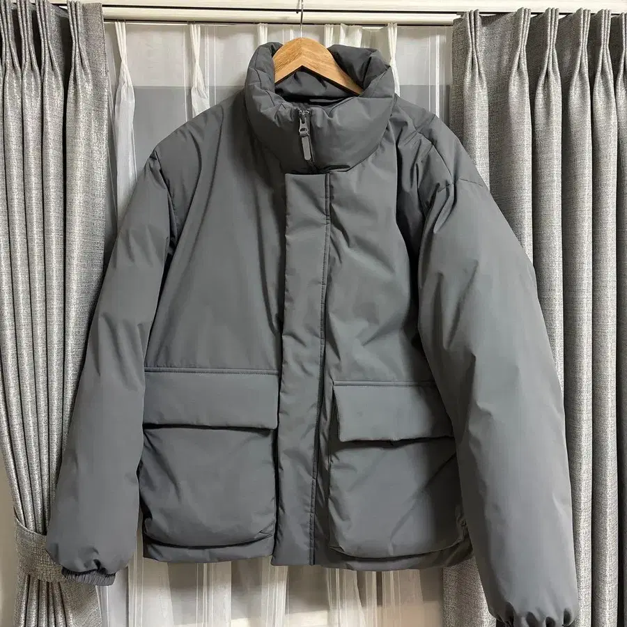 새상품 구매 후 5회 정도 짧은 시간 착용한 새상품급입니다. 지난 시즌 모델이라 흔하지 않고 GU 제품인지 잘 티가 나지 않아 추천합니다. GU 히트 패디드 스탠드 블루종 색상 그레이 사이즈 XL 기장 72 어깨 너비 58.5 가슴 너비 72