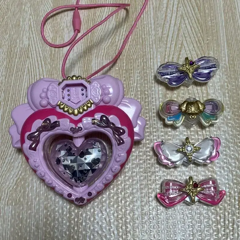 너와 아이돌 프리큐어 아이돌 하트 브로치와 키라룬 리본 세트입니다. 아이가 가지고 놀지 않게 되어 판매합니다. 개인적인 생각이지만, 흠집 등은 없습니다. 작동 확인 완료했습니다. 배터리는 포함되어 있으니 바로 가지고 놀 수 있습니다.