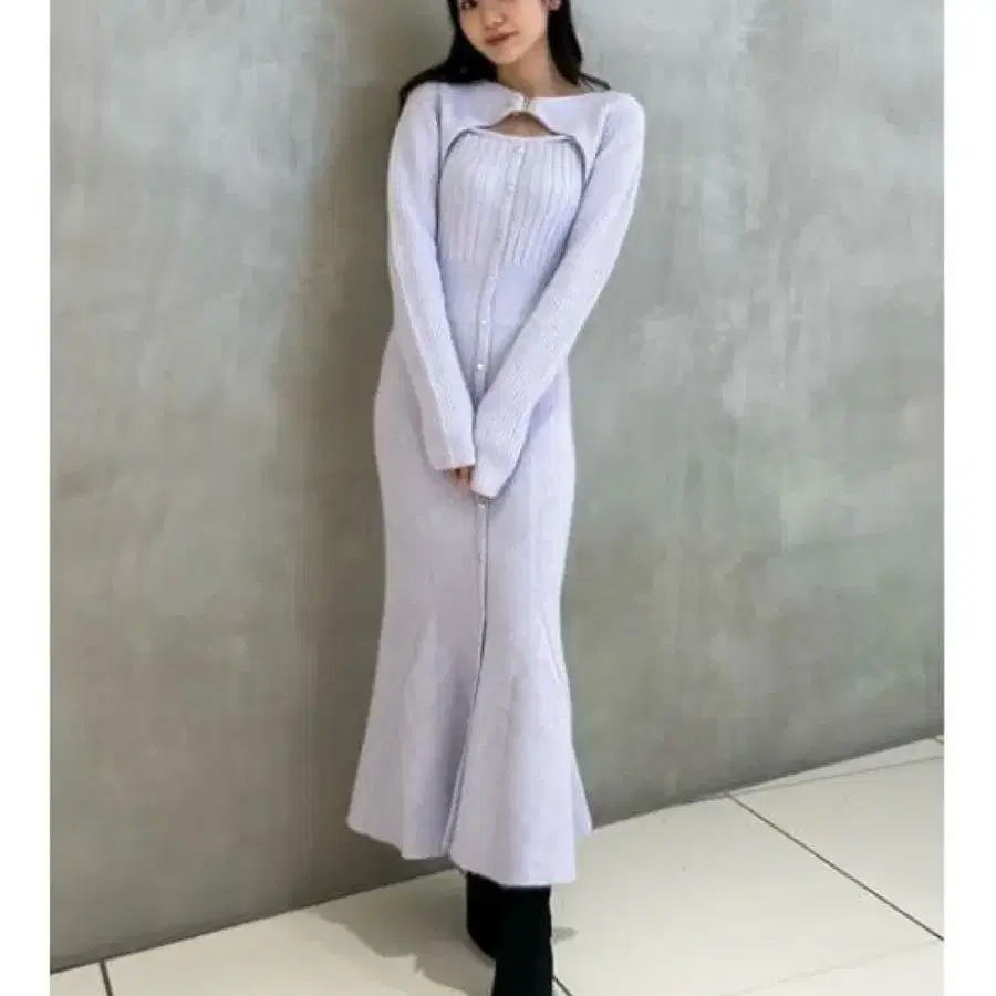 ★ 브랜드: rienda ★ 색상: 라이트 퍼플 ★ 1회 착용 ★ 가격: 정가: 12100엔 사이즈: 프리 사이즈 ★ 가슴 너비 상의: 45 원피스: 35 ★ 어깨 너비 상의: 32 ★ 총길이 상의: 35 원피스: 118 ★ 소매 길이 상의: 66 ★ 허리: 58 ★ 힙: 82 ★ 밑단 둘레: 200 ★ 상품 설명 ★ [ 트렌드 스타일을 완성하는 레이어드 니트 원피스 ] [ Design ] 타이트한 실루엣에서 밑단으로 갈수록 부드럽게 퍼지는 머메이드 라인의 니트 원피스에, 같은 실로 디자인한 짧은 가디건이 세트로 구성된 트렌디한 니트 원피스입니다. 풍성하고 입체감이 느껴지는 MIX 컬러 실로 디자인하여 트렌디하고 눈길을 끄는 아이템으로 완성했습니다. 불필요한 디자인을 배제하여 데일리로 착용하기 쉬울 뿐만 아니라, 다양한 코디가 가능하도록 했습니다. 가디건의 넥 라인은 적당한 파임으로 데콜테 라인을 건강하고 예쁘게 보이도록 디자인했습니다. 가디건은 완만한 커브 라인이 특징이며 모던한 느낌을 줍니다. 개성 있으면서도 고급스러운 룩으로 어떤 상황에도 추천하고 싶은 아이템입니다. 가디건의 버클과 원피스의 버튼 색상을 통일하여 착용 시 세트 느낌을 더했습니다. 원피스와 가디건 모두 앞뒤로 자유롭게 착용 가능하며, 단품으로도 활용 가능한 훌륭한 니트 원피스입니다. #리엔다 #rienda #원피스 #니트원피스 #셋업 #봄옷 #봄 #페미닌 #스나이델 #셀포드 #미라오웬 색상 - 퍼플 패턴 - 무지 사이즈 - FREE SIZE