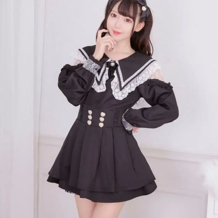 Dear my Love 유메텐보 지뢰계 미니 원피스 블랙 레이스 리본
