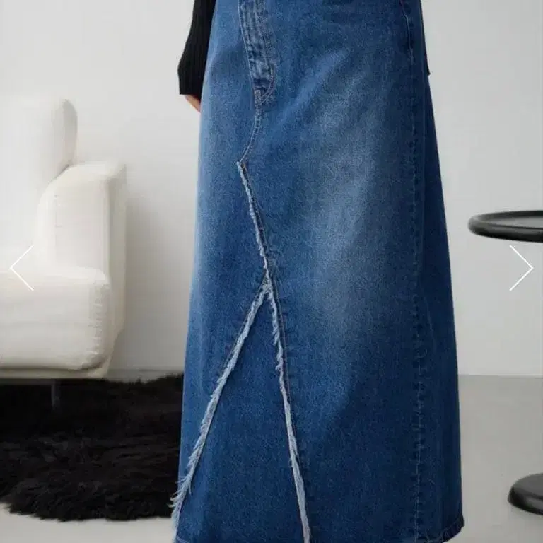 코코딜 데님 프린지 헴 롱 스커트