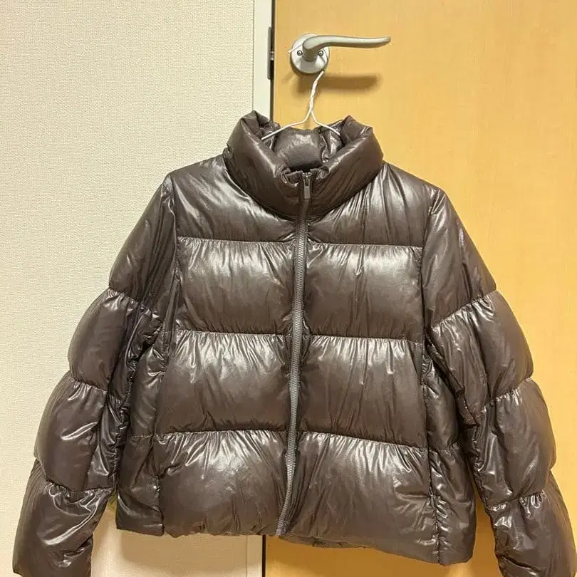 유니클로 다운 자켓 다운 브라운 보라색 드로 코드 포함 미사용
