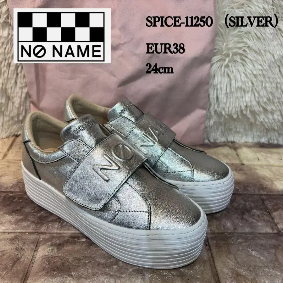 실버 색상의 천연 가죽을 사용한 NO NAME의 통굽 스니커즈는 시선을 사로잡는 스타일리시한 디자인입니다. 캐주얼한 코디네이트에 완벽하게 어울립니다.