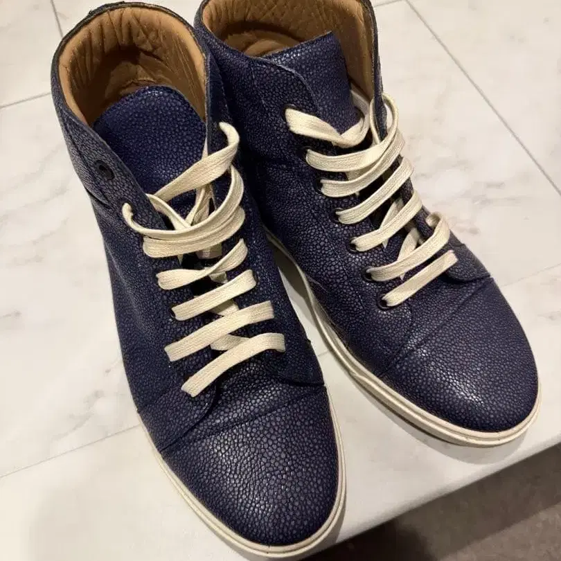 미사용 spring court 네이비 하이컷 스니커즈 43 올 가죽