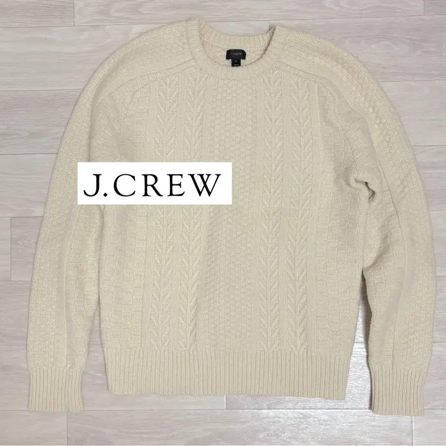고급 램스울 100%를 사용한, 제이크루의 스테디셀러 케이블 니트입니다.