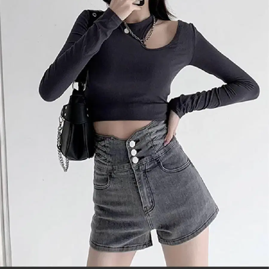 TaBoo 다크 그레이 데님 갸루 숏팬츠