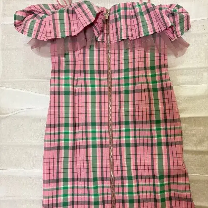 MAISON SPECIAL 프릴 장식 핑크 체크 슬리브리스 원피스