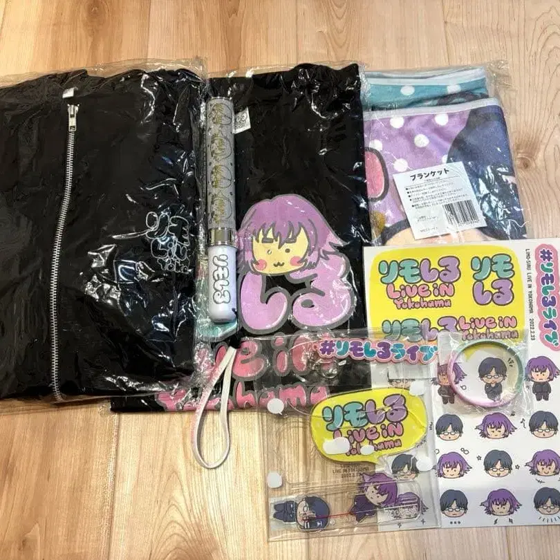 리모시루 Live IN Yokohama 굿즈 세트! 아크릴 스탠드, 스티커, 응원봉, 캔뱃지, T셔츠, 후드티, 담요, 러버 밴드 아내가 구매했습니다! 미니멀리스트를 위해 판매합니다! #리모네선생 #시루코 #빈트롤