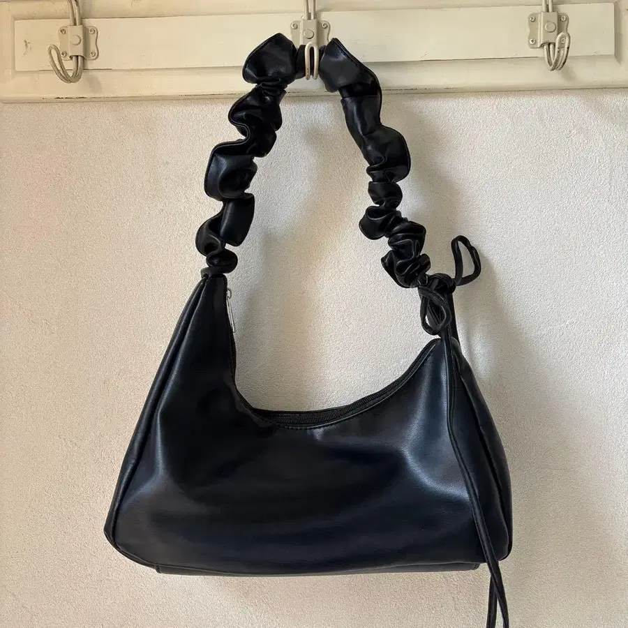 리본 숄더백 한국 스타일 발레코어 인조 가죽 미니백 블랙 블랙
