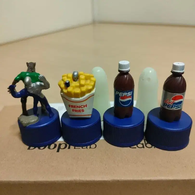 추억의 펩시맨 보틀캡! 방에 장식하며 즐겼지만, 미니멀리스트를 위해 판매합니다. - 피규어 캐릭터: 히어로 캐릭터 - 프라이 용기: 프라이 - 음료 종류: 펩시 보틀 - 색상: 파란색 캡 중고품, 자택 보관이므로 신경 쓰이시는 분은 삼가해 주시기 바랍니다.