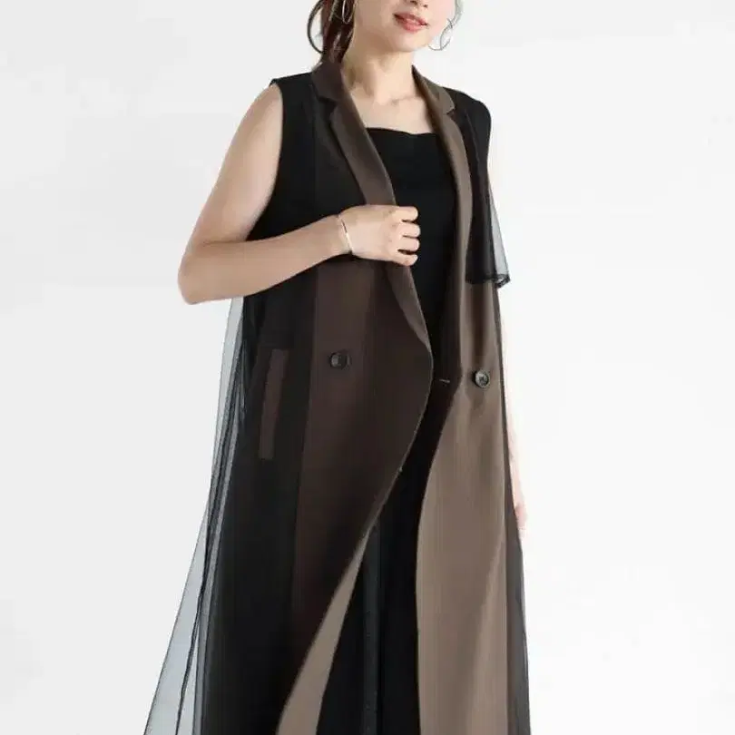 Vin 튤 도킹 트렌치 베스트 사이즈 38 정가 22,000 컬러 다크 브라운