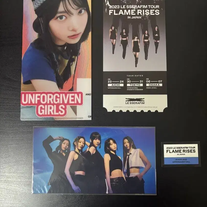 첫 번째 사진은 2023년 라이브 시 굿즈입니다. 두 번째 사진은 앨범 구매 시 부속되었던 혜택입니다. 세 번째 사진은 앨범 구매 혜택과 DAY OFF 책자입니다. 다른 르세라핌 굿즈도 판매 중이니, 묶음 구매 시 가격 인하해 드립니다.