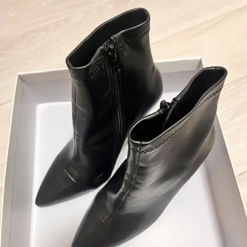사이드 지퍼가 달린 블랙 스틸레토 부츠.