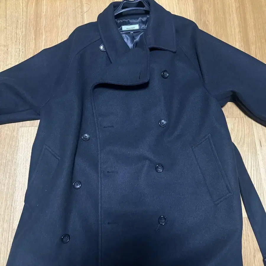 울 혼방 블랙 트렌치코트, 스타일리시한 디자인.