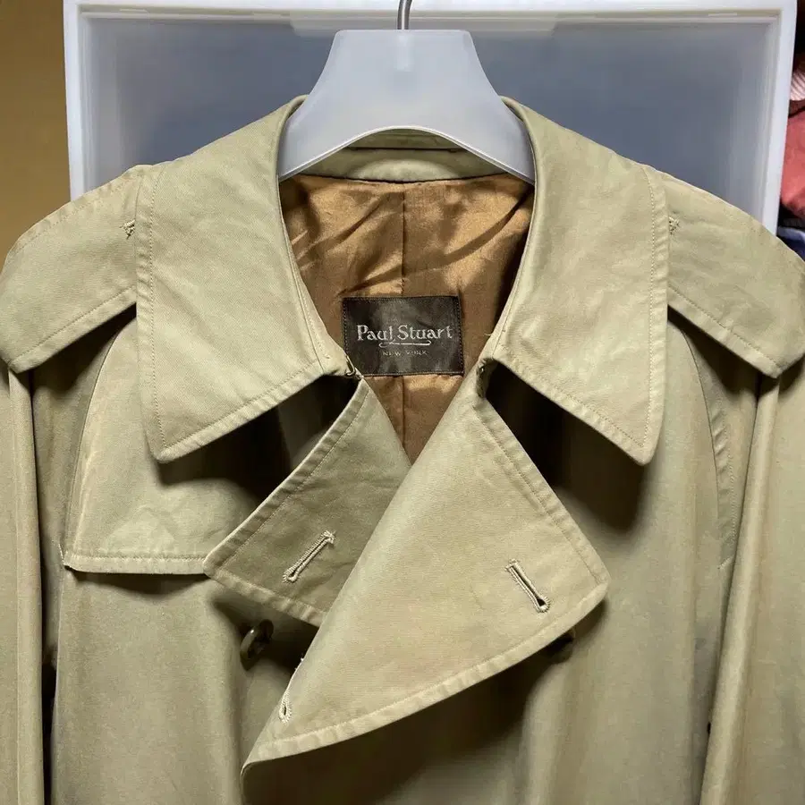폴 스튜어트의 원피스 소매 트렌치코트입니다.