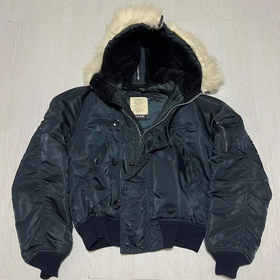 80년대~90년대 USA ALPHA INDUSTRIES N2B 플라이트 자켓 SILVER N-2B 알파 인더스트리즈 미국제 플라이트 자켓 봄버 자켓 밀리터리 자켓 집업 풀 집업 후디 후드티 퍼 후드 짧은 기장 미국제 MADE IN USA 네이비