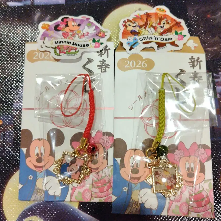 디즈니 스토어에서 구매한 2026년 신춘 복권 스트랩 미키와 칩&데일 세트의 미개봉 새상품입니다. 씰의 미니와 칩&데일도 함께 드립니다. 스트랩이 들어있는 투명한 봉투는 미개봉 상태입니다. 원래 들어있던 종이 봉투에 담아 발송해 드립니다.