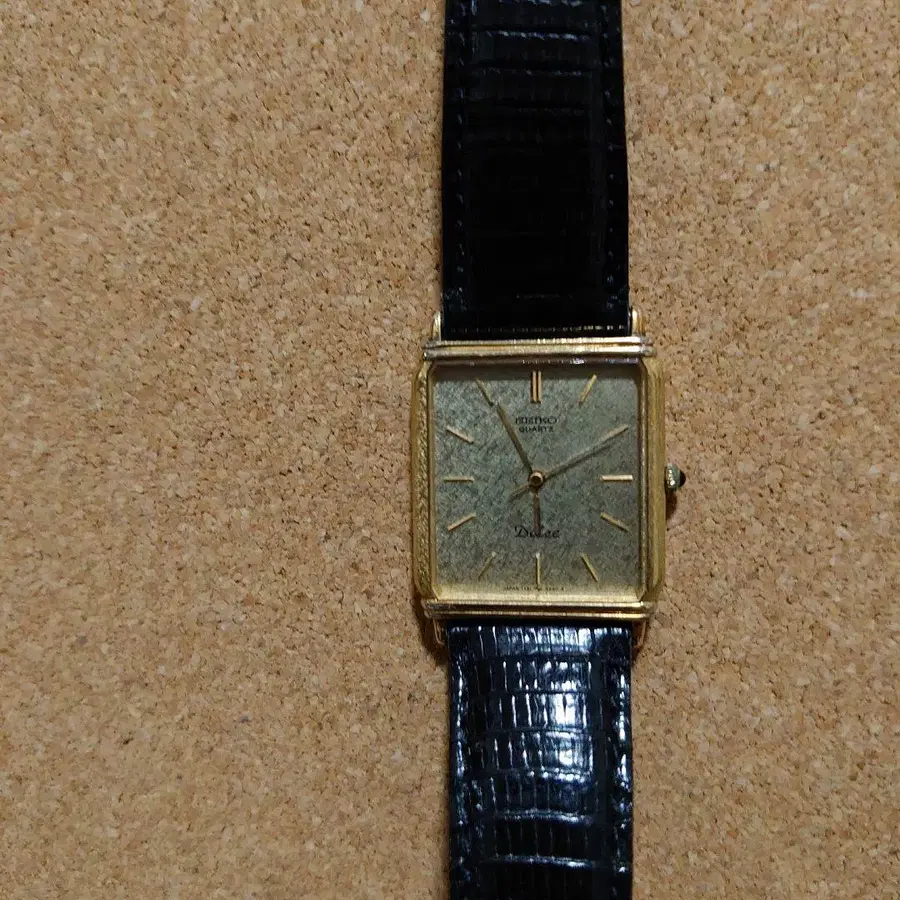 세이코 돌체 작동품 골드 스퀘어 케이스 컬렉션 정리로 판매합니다. 다른 곳에서도 판매 중이므로 갑자기 내릴 수 있습니다. 양해 부탁드립니다. - 브랜드: 세이코 - 모델명: 돌체 - 색상: 골드/블랙 - 소재: 가죽/금속 - 스타일: 아날로그 - 벨트 타입: 크로커다일풍 - 다이얼 색상: 골드 - 케이스 모양: 스퀘어 방문해 주셔서 감사합니다.