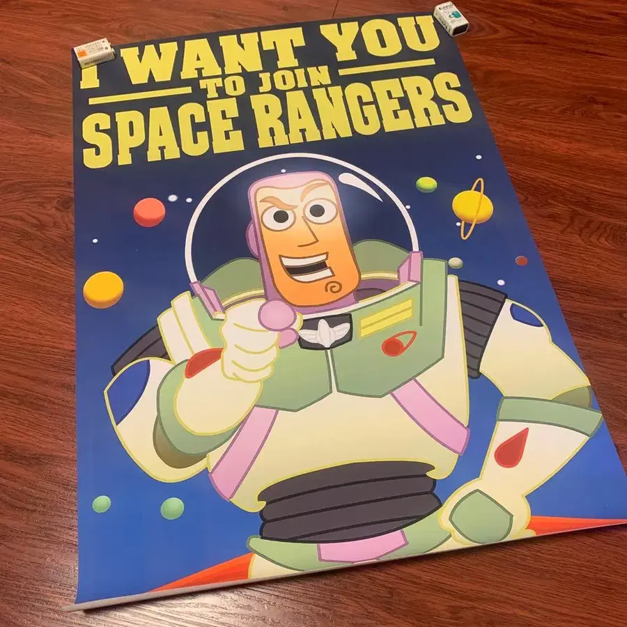 사진에 보이는 포스터만 판매합니다. 사진으로 상태 확인 부탁드립니다. 사이즈는 약 50 x 70cm입니다. 앤디의 방에 있는 포스터와 비슷합니다. 컬렉션으로 어떠신가요? 천과 같은 소재로 만들어져 있습니다. 제조사 불명. 토이스토리 우디 버즈 제시