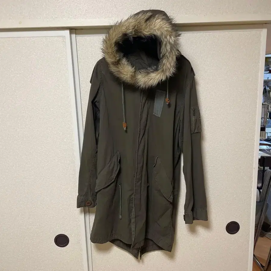 올리브색 퍼 달린 모즈 코트
