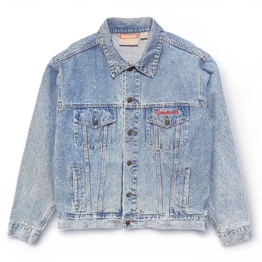USA 구제 의류 Genentech 빈티지 데님 자켓, 자수 워크 자켓, 트래커 자켓 남성용 XL 상당