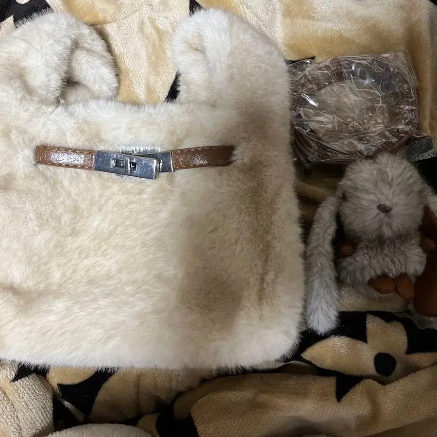 크림색 퍼 토트백, 핸들과 귀여운 봉제 인형 포함. - 색상: 크림색 - 소재: 퍼 - 디자인: 핸들 포함 토트백 - 부속품: 봉제 인형 방문해 주셔서 감사합니다.