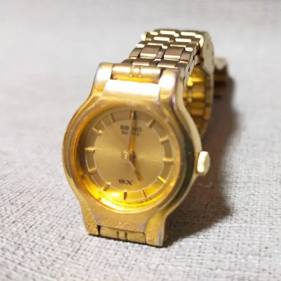 골드 색상의 세이코 SX 아날로그 손목시계입니다. 레어템으로 스타일리시하고 엘레강트한 디자인. - 브랜드: 세이코 - 모델: SX - 색상: 골드 - 소재: 스테인리스 스틸 - 스타일: 아날로그 - 사이즈: 여성용 방문해 주셔서 감사합니다.