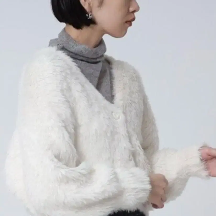 Design Point: 포근한 터치의 샤기 실로 짠 V넥 가디건입니다. 크롭 기장으로 올해 유행하는 실루엣을 연출했습니다. Styling Point: 하이웨스트 하의나 원피스, 데님 팬츠와도 궁합이 좋습니다. 옷깃을 살짝 뒤로 넘겨 느슨하게 입는 것도 추천합니다. Fabric Point: 털이 길고 푹신하며 부드러운 터치의 샤기 실을 사용했습니다. 촉감이 부드럽고 까끌거림이 적어 안심하고 착용할 수 있습니다. 이 상품은 주로 겨울에 착용하기 좋습니다.