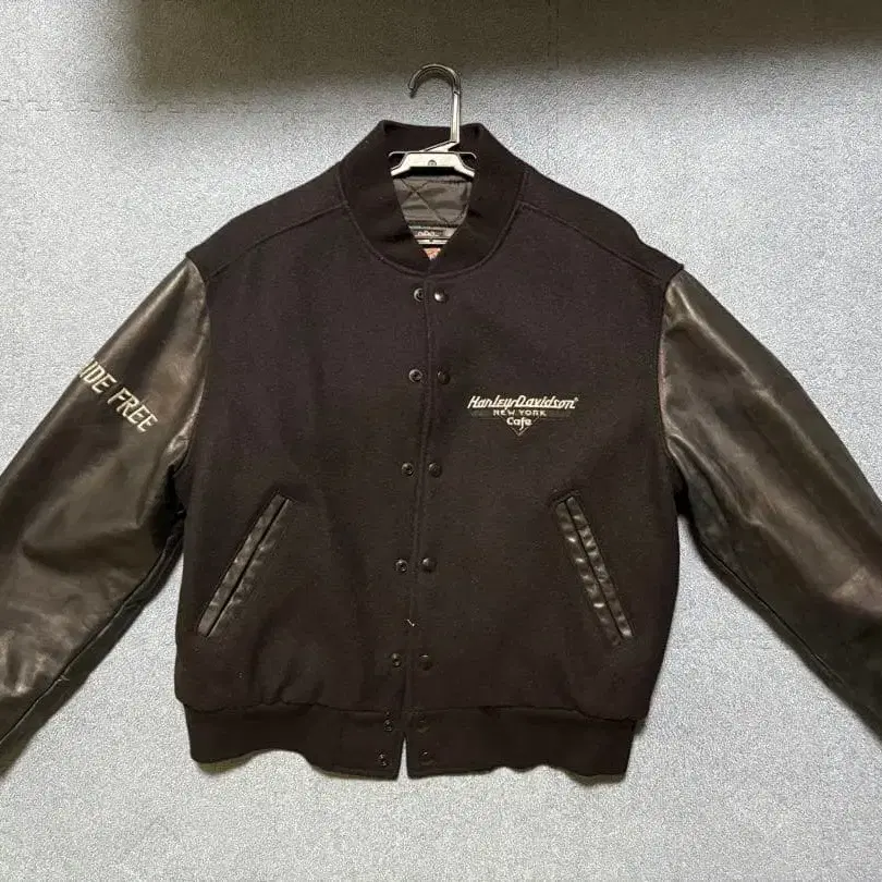 가죽 콤비네이션, 자수 로고가 특징인 Harley-Davidson 자켓.