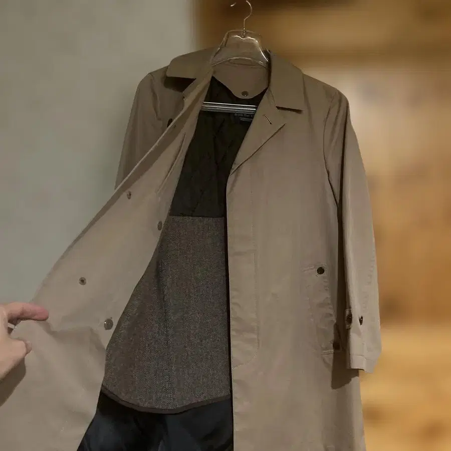 베이지 더플 코트 후드 부착