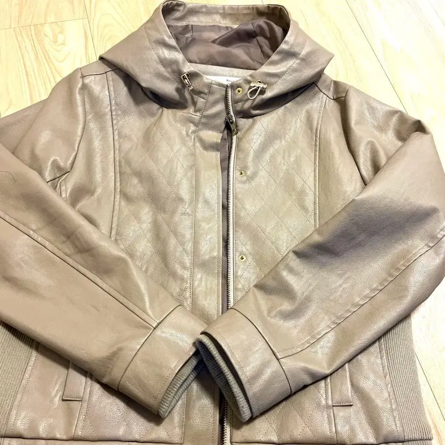 자동 번역되었어요. 원문보기퀼팅 디자인의 베이지 합성 피혁 자켓.