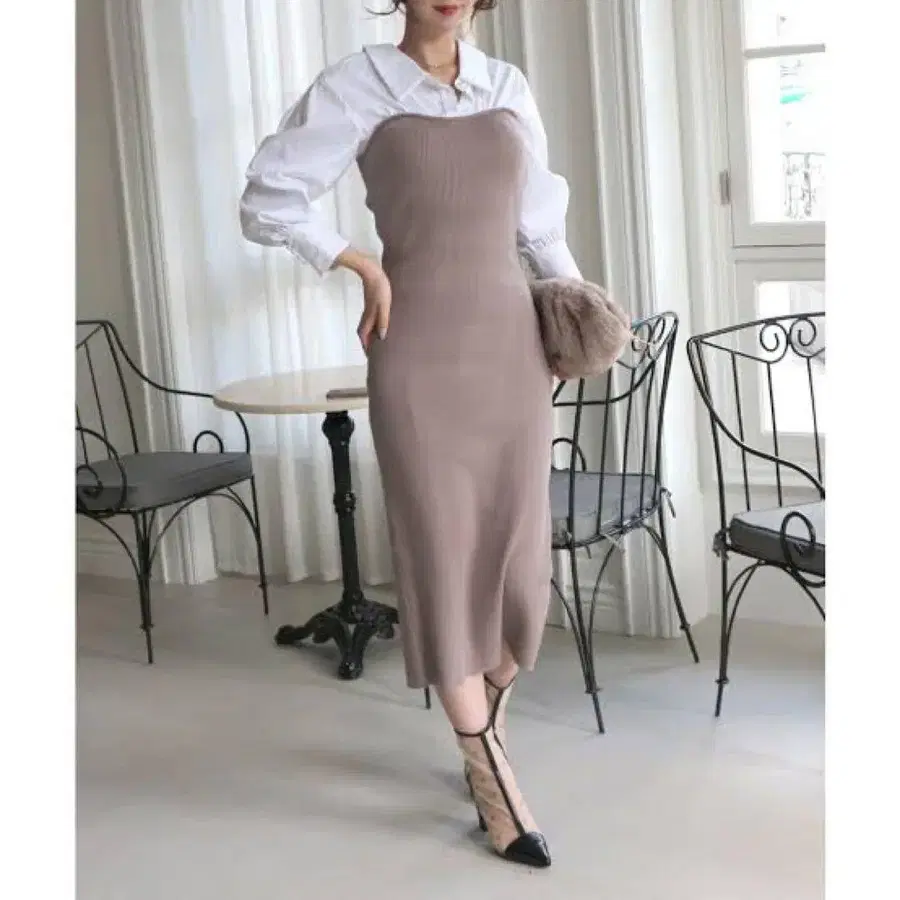 새상품급 ROYAL PARTY 셔츠 도킹 니트 원피스