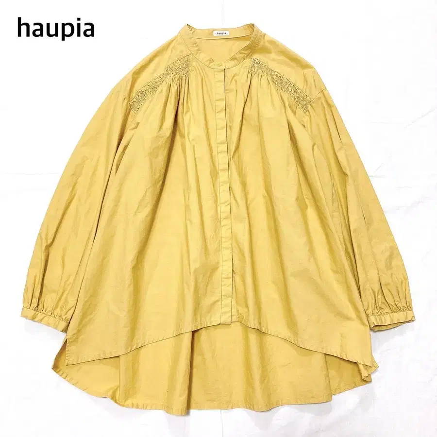 [ 새상품급 ] 하우피아 밴드 카라 개더 긴팔 블라우스 셔링