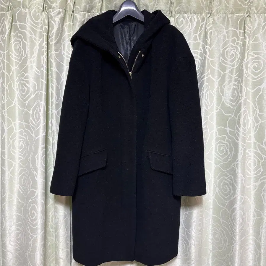 매우 따뜻한 울 소재의 후드 부착 코트입니다. 블랙 색상으로 팬츠나 스커트 어디에나 매치하기 좋습니다. 골드 색상의 지퍼가 포인트입니다. 드라이클리닝 완료.