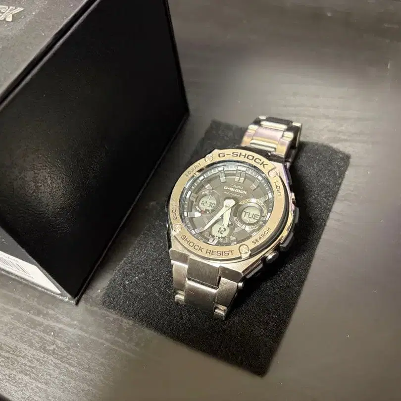 사용감이 상당히 있습니다. 베젤 부분과 밴딩에 긁힌 자국이 다수 있습니다. 원래 수지 밴드였으나 메탈 밴드로 변경했습니다. 탈착한 수지 밴드와 메탈 밴드의 여분은 모두 동봉합니다.