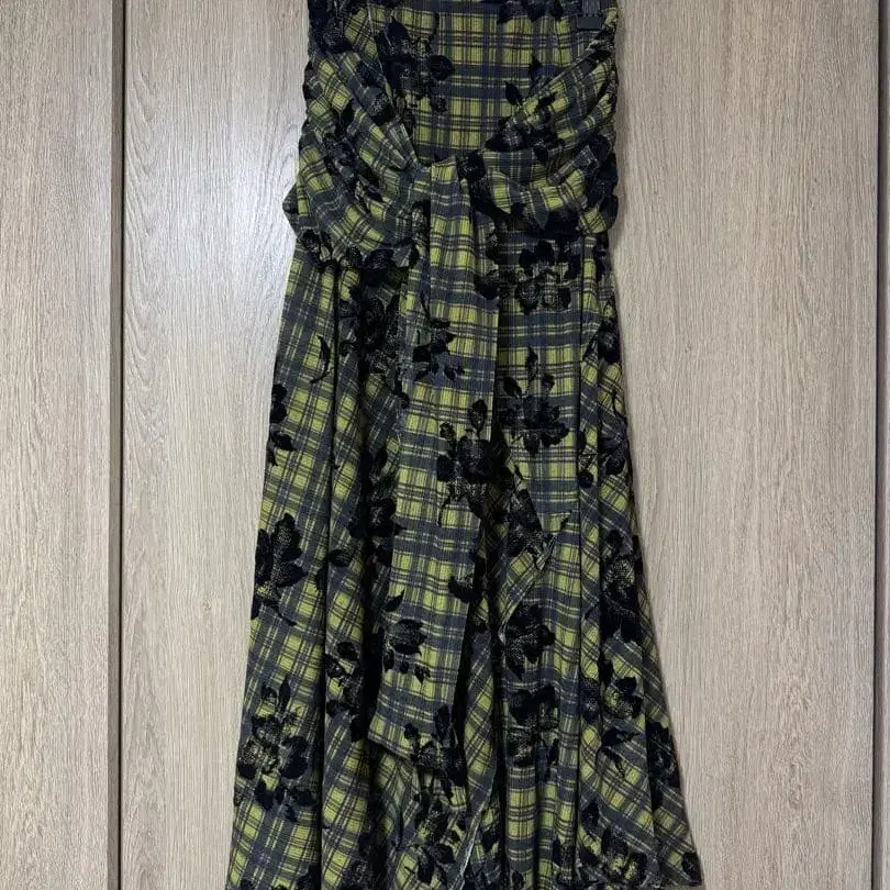 AMERI 품번 0124209620990 M 사이즈 소재: 폴리에스테르 컬러: 그린 패턴: 체크, 꽃 1번만 착용했습니다. 거의 새상품입니다.