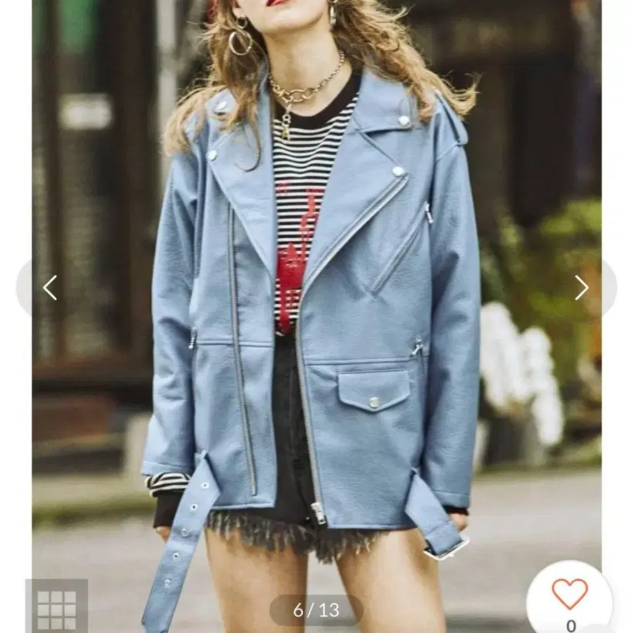 스카이블루 가죽 라이더 자켓 쥬에티 구제 의류