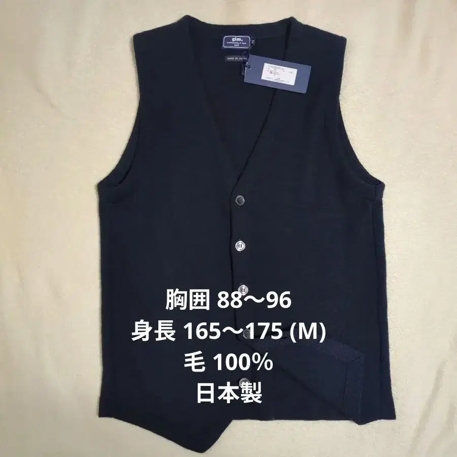 100% 울 소재의 네이비 버튼 베스트, M 사이즈, 일본제.