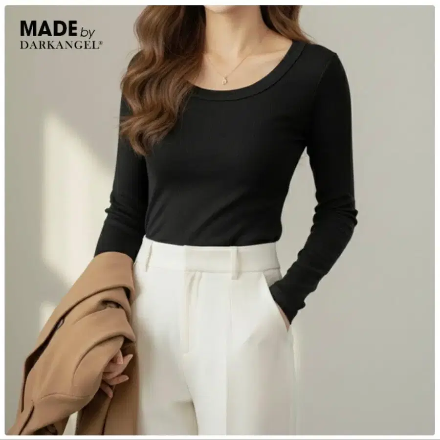 U넥 디자인의 속기모 긴팔 상의, 쾌적한 착용감과 스타일리시한 실루엣. - 브랜드: DARKANGEL - 스타일: U넥 - 사이즈: L - 소재: 속기모 - 색상: 블랙 방문해 주셔서 감사합니다. 사이즈 - L